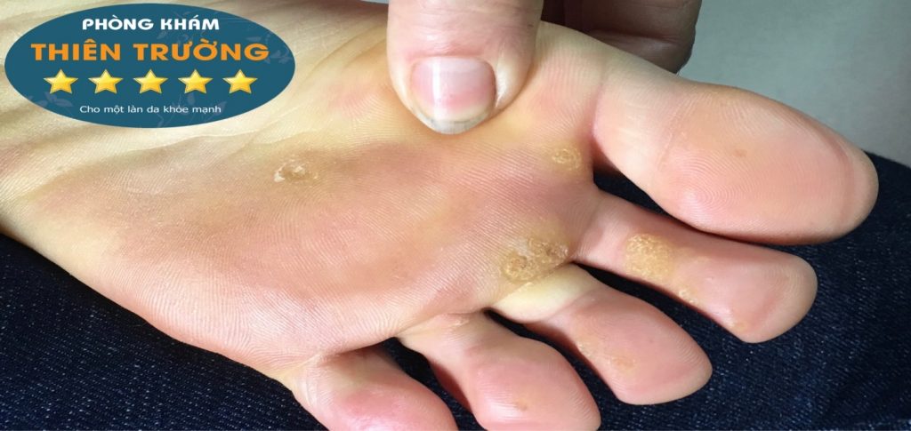 Hạt cơm bàn chân: thường gặp là dạng myrmecie (do HPV types 1 gây nên).