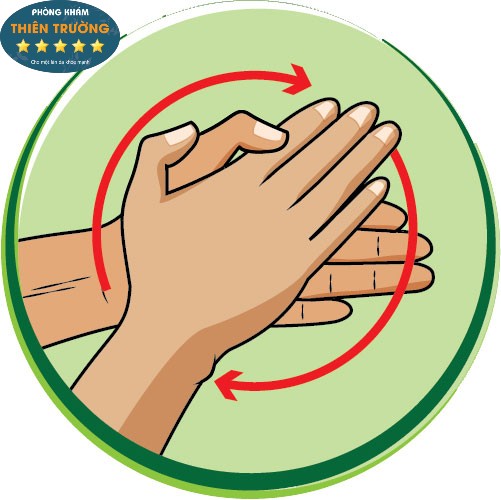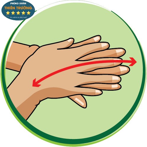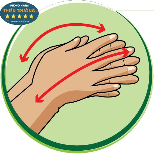 Bước 3: Chà hai lòng bàn tay vào nhau, miết mạnh các kẽ trong ngón tay.
