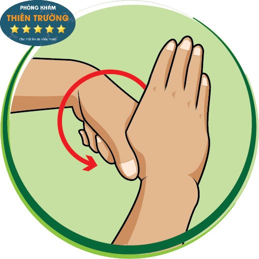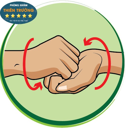 Bước 5: Dùng bàn tay này xoay ngón cái của bàn tay kia và ngược lại (làm sạch ngón tay cái).