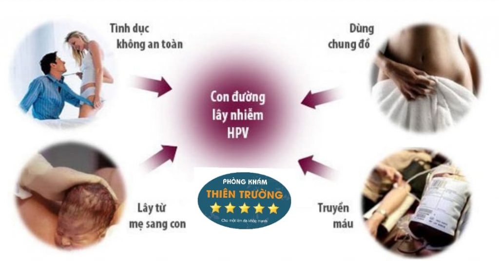 Quan hệ tình dục không an toàn là con đường lây truyền chủ yếu của virus HPV. Bao gồm quan hệ qua âm đạo, hậu môn, miệng mà không sử dụng biện pháp bảo vệ. Virus có thể lây qua tiếp xúc trực tiếp với vùng da hoặc niêm mạc bị tổn thương, ngay cả khi không có biểu hiện rõ ràng. Ngoài ra, HPV có thể lây qua tiếp xúc gián tiếp nếu dùng chung đồ dùng cá nhân như khăn tắm, đồ lót, dao cạo, bồn tắm… bị nhiễm virus. Trẻ sơ sinh cũng có thể mắc sùi mào gà nếu mẹ bị nhiễm HPV và sinh thường qua ngả âm đạo
