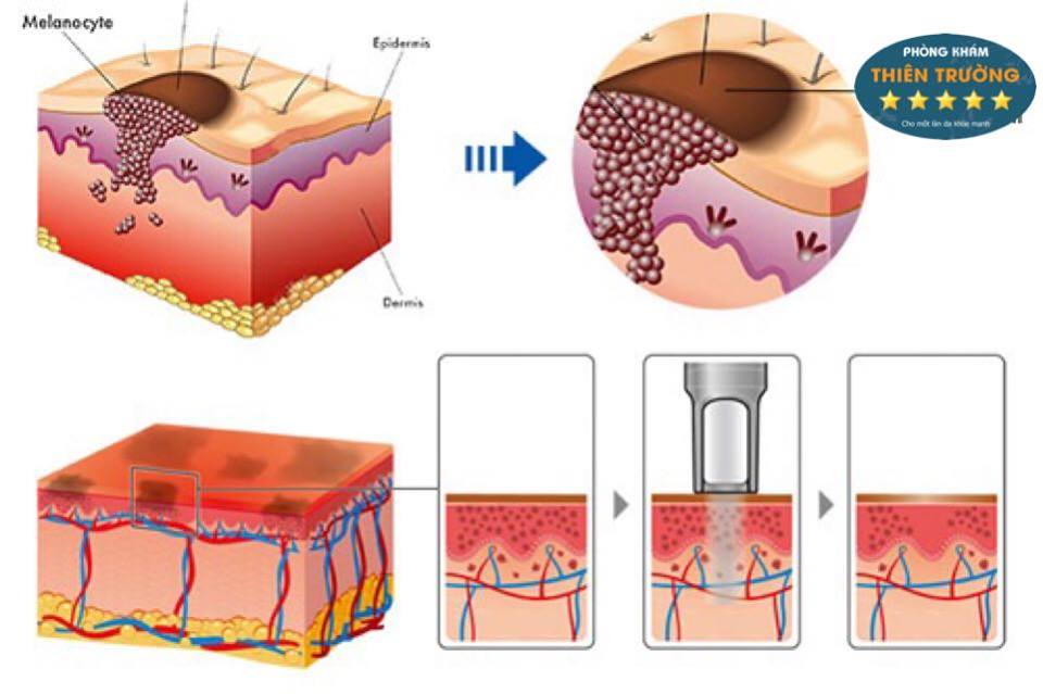 - Tác động sâu vào lớp trung bì, phá hủy các sắc tố melanin gây nám, sạm da